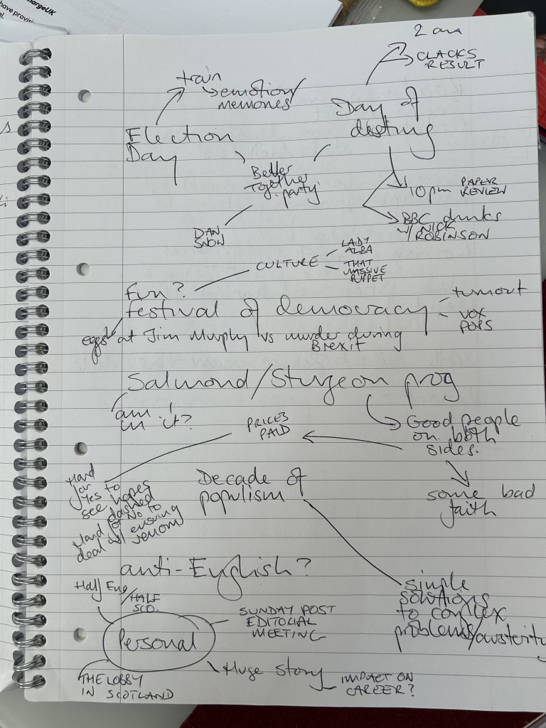 Not long after that I was working in political journalism and after covering the 2014 Scottish independence referendum at close quarters I asked my line managers about flexing again. I was fairly worn out. My partner and I wanted to do four days at work each. My bosses were resistant. I floated the idea of a job share which they said was inappropriate because ‘journalism is not like making cans of beans’ – which was both true and entirely irrelevant.
